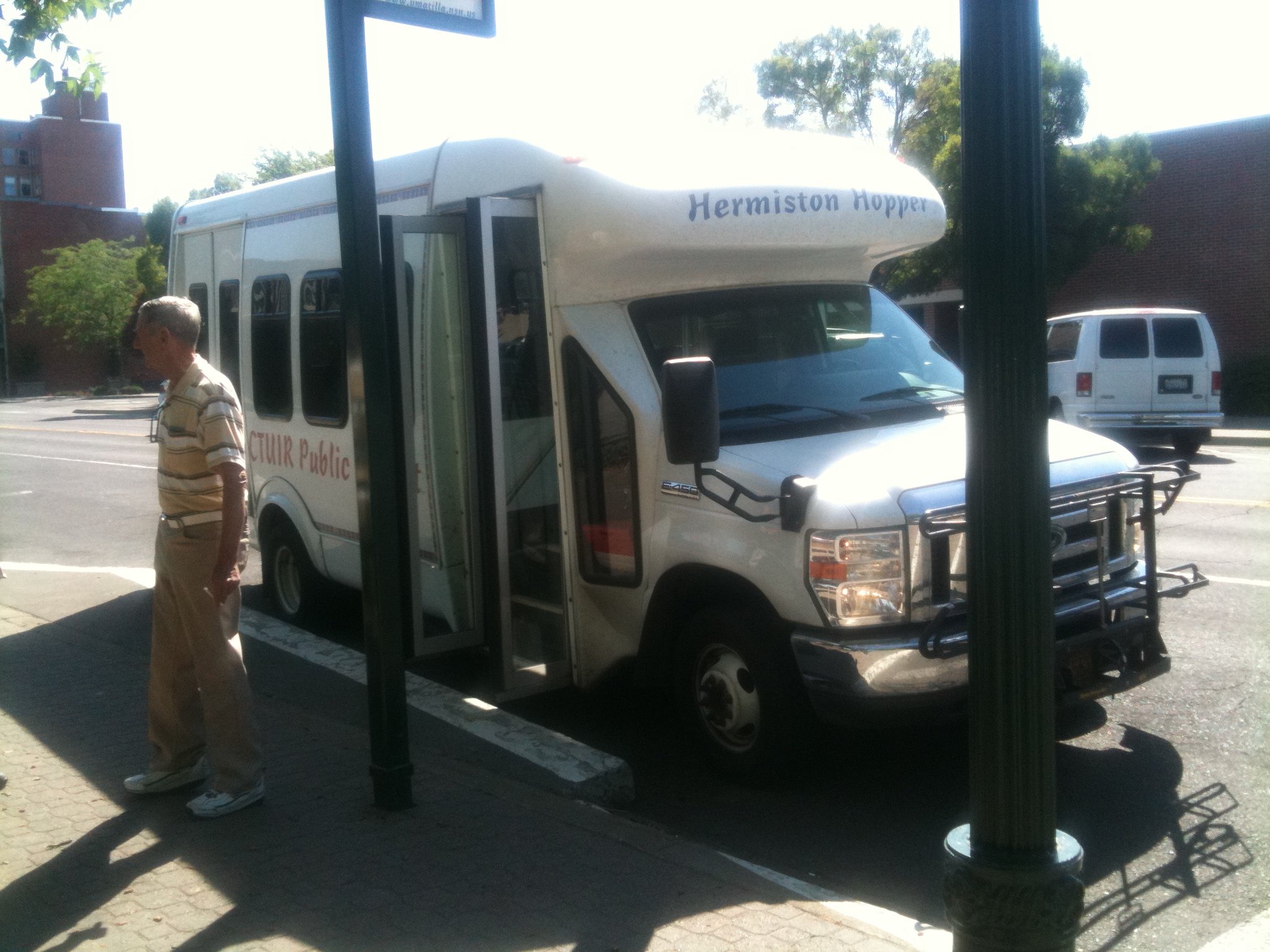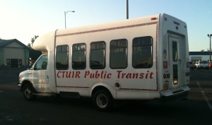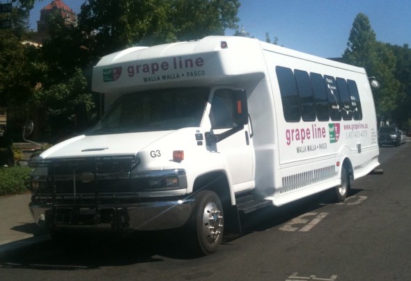 Columbia County Public Transportation, one of the smallest transit agencies in the state. (I think only the still-unnamed PBTA in Whitman County is smaller.) During the morning and afternoon hours, CCPT runs this bus from Dayton and Waitsburg to Walla Walla (and College Place if requested) for people to do shopping or head to their jobs or whatever they need to do in town. According to their website, the cost is $7.50 for a round-trip fare, or $5 each way.