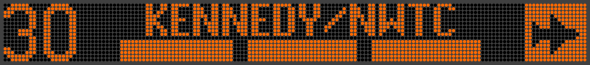 Much like the Stacked Message, the Scrolling Stacked Message has two lines of text. However, this style of destination sign can have one or both lines of text scrolling to show as much information as felt necessary. In this case, the destination sign above is a mock-up for HART Route 30, which serves the Kennedy Blvd corridor, Tampa International Airport, and Northwest Transit Center. The bottom line of text is used to list major destinations along the way, which in the case of Route 30 could include University of Tampa, Westshore Mall, Town N’ Country, and Hanley/Waters Plaza. (Click the link above to see the actual animation so it makes more sense.) I should also note that the Scrolling Stacked Message can also be built as a Variable Stacked Message. Another feature to point out on this particular destination sign is the airport symbol on the right side. HART’s Route 30 is the only route that serves the airport, and so the airport becomes one of the key destinations on the route. Rather than having to put “Tampa Intl” somewhere on the destination sign, the airport symbol is shown at all times just like the route number. Transit agencies can also do the same thing for train/bus stations, though I personally don’t know of any examples of this.
