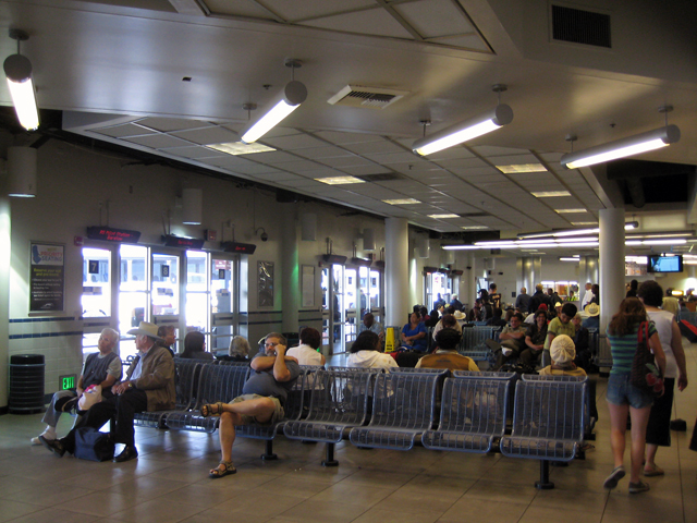 At 5AM the next morning, the station doors were opened up. After freshening up in the restroom, I got in the line at Gate C to await the bus departure at 5:40AM. While we were waiting in line, everyone that was boarding the 5:40AM bus was “wanded” by the security guard (the same guy that had been there all night) and had their carry-on bags checked. While this wasn’t the first time I’d experienced this (the last time being when I boarded a Seattle-bound bus in Vancouver BC back in August ’10), I still found it weird. I didn’t find the process invasive or anything, and compared to going through security at the airport, it was nothing.