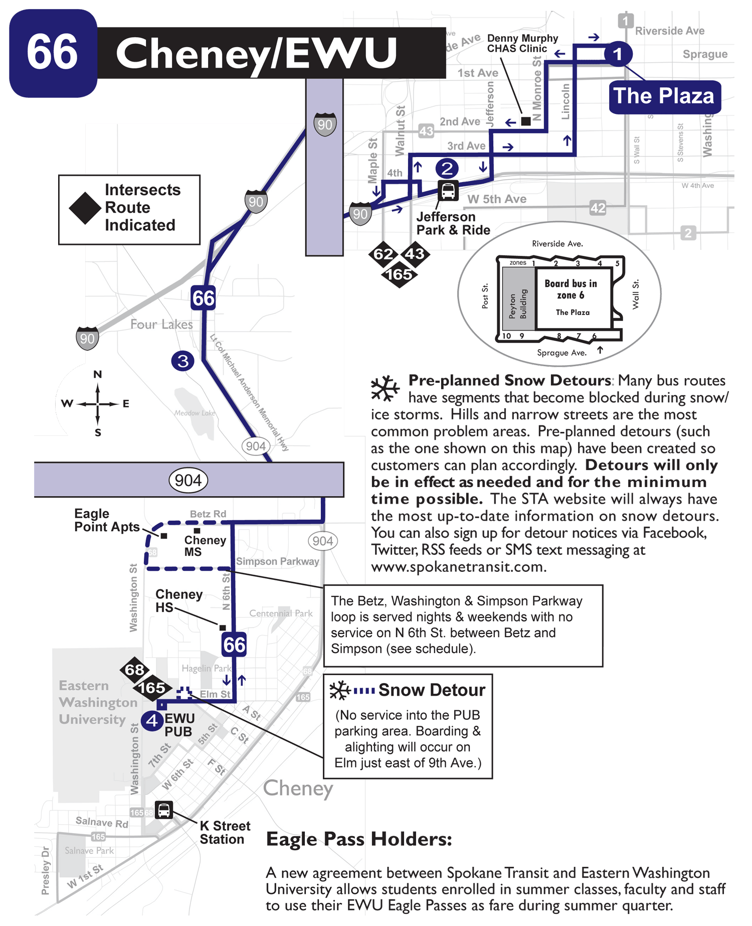 *Note that while it is not mentioned on the route map, Route 165 can also be affected by this snow detour. With the exception of the first trip in the morning, all Route 165 trips arrive in or leave from Cheney as a Route 66, so it doesn’t impact riders too much.